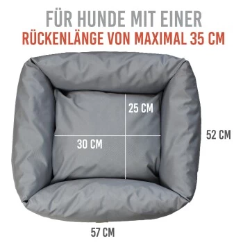 Der KaraLuna Hundeautositz bietet einen komfortablen und sicheren Platz für Deinen Hund während eurer gemeinsamen Autofahrt. Die Außenmaße des Sitzes betragen etwa 57 x 50 x 20 cm (B x L x H). Die Innenmaße der Liegefläche sind ca. 30 x 25 cm. Der Autositz wird unter höchsten Qualitätsstandards in Polen hergestellt. Der KaraLuna Autositz für Hunde eignet sich für kleine Hunde bis zu einer maximalen Rückenlänge von 40 cm (gemessen Halsband bis Schwanzansatz). Der gepolsterte Sitz hat eine längenverstellbare Leine mit praktischem Karabiner. Das Material ist robust, wasser- und schmutzabweisend. Der KaraLuna Hundesitz Auto lässt sich einfach & schnell ein- und ausbauen. Das Hunde Reisebett wird mit Hilfe des Autogurts angeschnallt und/oder über den integrierten Befestigungsgurt fixiert (siehe Produktvideo).