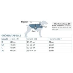 - Größe XL passt Hunden mit einem Halsumfang von 66 cm und einem Brustumfang von 86 bis 114 cm und einer Rückenlänge von 69 cm