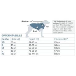 - Größe XL passt Hunden mit 66 cm Halsumfang, 89-114 cm Brustumfang und 69 cm Rückenlänge