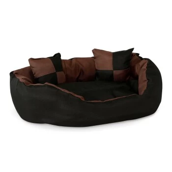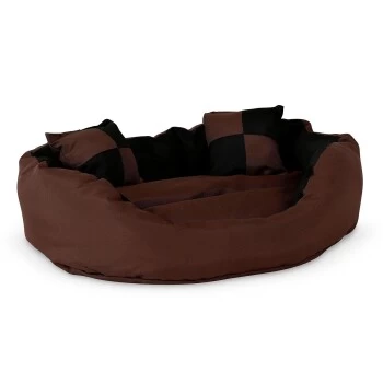 Dieses formschöne Hundebett aus robustem Oxford-Material bietet Ihrem Vierbeiner einen gemütlichen Schlaf- und Rückzugsplatz. Das wendbare Körbchen und Bodenkissen sorgen dafür, dass Sie 4 verschiedene Designs passend zu Ihrer Wohnsituation nutzen können. Ein tiefer Einstieg erleichtert Tieren jeder Größe den Zugang zum Hundebett. Die zwei zusätzlichen Spielkissen sind bestens zum Spielen und Toben geeignet. Natürlich können Sie das Bettchen auch als Katzenkörbchen nutzen. Zur Reinigung reicht ein feuchtes Tuch.