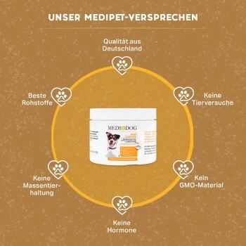 Der Stoffwechsel deines Hundes wird durch die ausgesuchten Mineralien im Medidog Barf Complete unterstützt und kann so normal funktionieren. Für die Gesundheit deines Hundes sind Mineralstoffe unabdinglich. Ohne diese lebenswichtigen Mineralien kann der Organismus deiner Fellnase nicht optimal funktionieren.