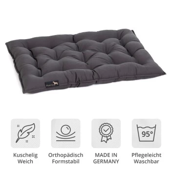 Aufgrund der verwendeten Materialien und hochwertigen Verarbeitung der Kissen, sind diese sehr robust und strapazierfähig. Deshalb kann es sowohl im Wohnzimmer, Kinderzimmer oder auch Outdoor auf der Veranda genutzt werden. Auch als Einlegekissen in einem Hundekorb, als Polster in der Transportbox oder als Reisebett ist dieses Kissen hervorragend geeignet.
