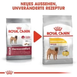 ROYAL CANIN Dermacomfort Medium ist geeignet für Hunde zwischen 11 und 25 kg und enthält sorgfältig entwickelte Kroketten, die perfekt auf das Gebiss Ihres mittelgroßen Hundes abgestimmt sind.