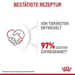 Alle ROYAL CANIN Produkte durchlaufen eine umfassende Qualitätskontrolle, um eine optimale Futterqualität zu gewährleisten und den individuellen Ernährungsbedürfnissen sowie dem Lebensstil Ihres Hundes gerecht zu werden. Mit ROYAL CANIN Starter Mousse Mother & Babydog bieten Sie Ihrer Hündin und den Welpen eine hochwertige und ausgewogene Ernährung.