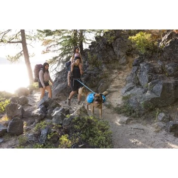 Mit dem Approach Pack kann man weiter wandern! Er ist ein brillanter Tagesrucksack, der – wenn man nicht viel Gewicht dabei hat – durch seine hervorragende Leistung, Passform und Funktionalität, auch bei einer Übernachtung überzeugt. Radial geschnittene Satteltaschen – die richtige Größe für ausgedehnte Tageswanderungen und ein bis zwei Übernachtungen – bilden ein passives Kompressionssystem für effizientes Tragen der Last über den Hundeschultern. Die Taschen sind an einem integrierten, atmungsaktiven Geschirr befestigt, welches den Komfort und die Stabilität des Rucksacks verbessert. Mit leichten Materialien, einem stromlinienförmigen Design und einer durchdachten Ordnung für die Ausrüstung. Der Approach Rucksack erweckt spontan die Motivation bei Hunden, die mit ihren Menschen tiefe ‚Erschnüffelungen‘ auf dem Trail suchen. Eine gute Faustregel ist, dass dem Hund nicht mehr als 25% des eigenen Körpergewichts als Traglast, also Gewicht von Rucksack plus Inhalt, gegeben wird. Hat dein Hund noch keine Erfahrung mit einem Rucksack, dann solltest du mit einer leichten (oder keiner) Ladung anfangen und dann die Traglast schrittweise erhöhen, so dass der Hund sich ans Tragen gewöhnt. Fitness und Rasse beeinflussen auch, wie viel der Hund tragen kann. Anfänger und alte Hunde sollten es auch leichter haben. Welpen müssen erst auswachsen, bevor sie zusätzliches Gewicht tragen, aber ein leerer Rucksack kann hier schon mal beim Angewöhnen helfen.