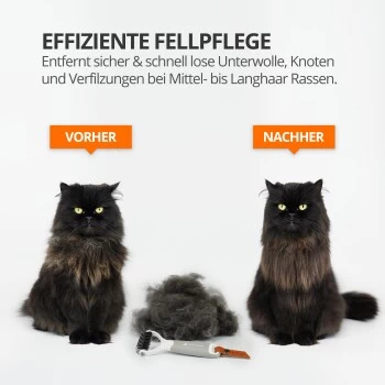- SCHNELL & EINFACH: Unsere Unterfellbürste liefert beste Ergebnisse bei minimalem Zeitaufwand. Schon 5 Minuten genügen, um das Haaren deines Haustiers um bis zu 90% zu reduzieren!
