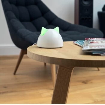 Mit einem Sure Petcare Hub können Sie bis zu 10 verschiedene SureFeed/SureFlap Connect Produkte anschlieĂźen und verwalten. Die LED-„Ohren“ des Hubs sind dimmbar.