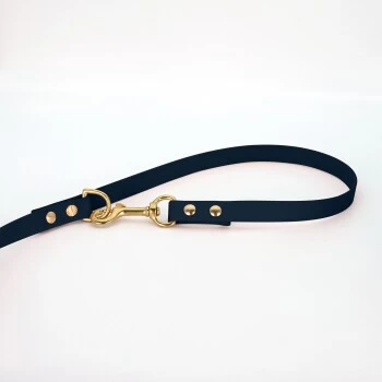 Edle Biothane Hundeleine mit goldener Messing Hardware.
