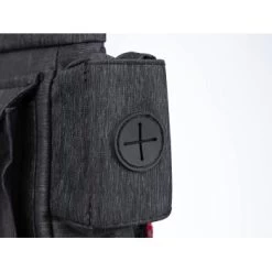 Auf der Rückseite der TwinTreat befindet sich, neben dem größeren Zusatzfach auf der Vorderseite, eine kleine Tasche für Wertsachen. Zudem ist am unteren Rand der Tasche ein Fingerhandtuch mittels Klettverschluss befestigt.